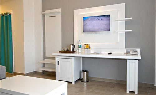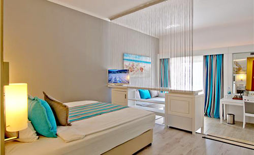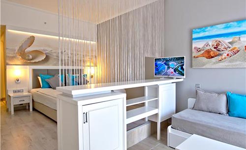 Ванна или душ, джакузи в номере (только в Select Room, Junior Suite, Jacuzzi Suite), халат (кроме номеров Standard Family), тапочки (кроме номеров Standard Family), фен, центральный кондиционер (в номерах главного здания), сплит-кондиционер (в номерах доп. корпусов), ТВ, ТВ-каналы на русском языке, DVD (платно, (только в Select Room)), кофеварка / кофемашина (кроме номеров Standard Family и Select Room), наборы для приготовления чая/кофе (кроме номеров Standard Family и Select Room), чайник (кроме номеров Standard Family и Select Room), телефон (платно), Wi-Fi интернет (бесплатно), сейф (бесплатно), балкон, смена постельного белья (3 раза в неделю), смена полотенец (3 раза в неделю), уборка номера (6 раз в неделю), утюг и гладильная доска (по запросу, платно), мини-бар (платно, (бесплатно - только вода в день заезда)), сервис в номер (платно)