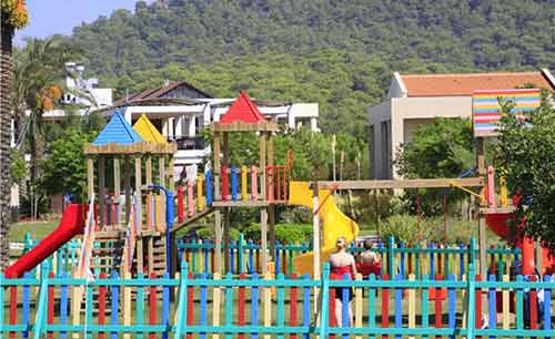 Высокие стулья в ресторане, детские кроватки ((бесплатно)), детские коляски (платно), детский бассейн (3 шт), крытый детский бассейн, детский мини-клуб, детский джуниор клуб, анимация для детей, детская площадка, детское меню, мини-дискотека, детский ресторан ((детский уголок в главном ресторане, во время ужина))